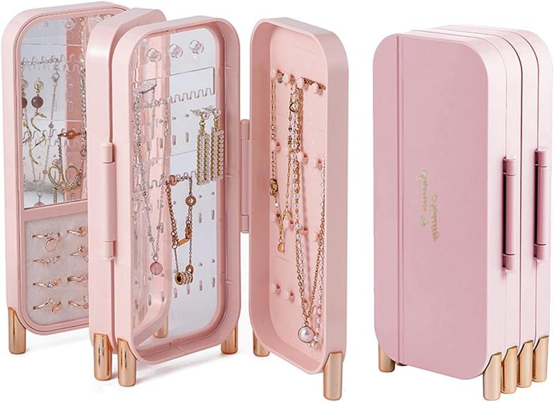 Keep your jewelry organized and protected with this foldable, dustproof, and mirror-equipped jewelry organizer box.