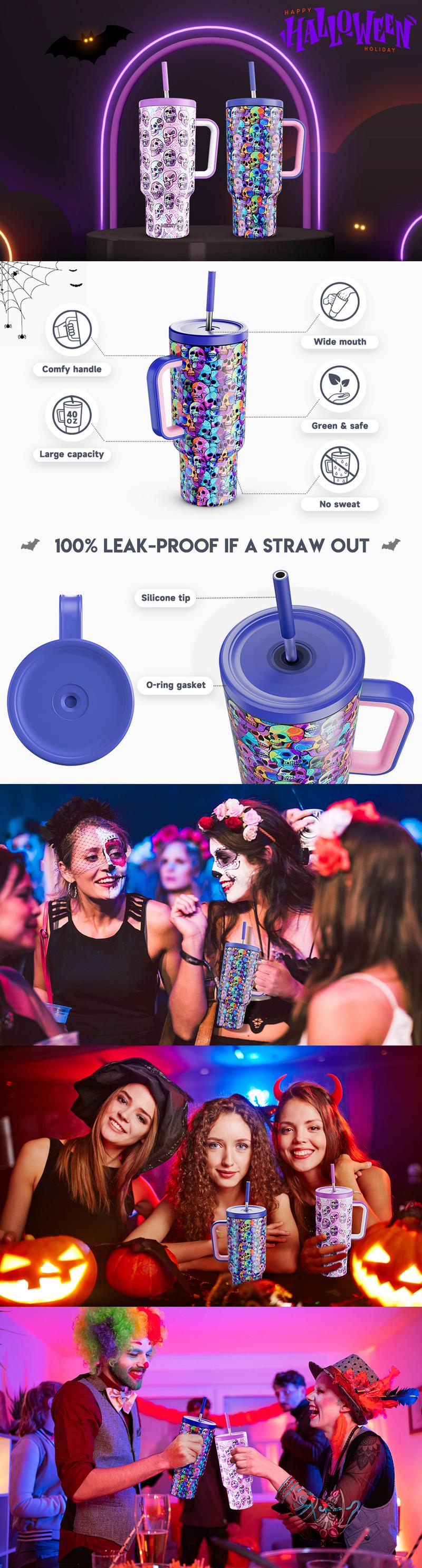 【Halloween Carnival】Meoky 40Oz Reusable Stainless Steel Car Cup,Portable Leak-Proof Water Cup, Keeps Cold for 24 Hours,Suitable for Outdoor Travel,Holiday Gift