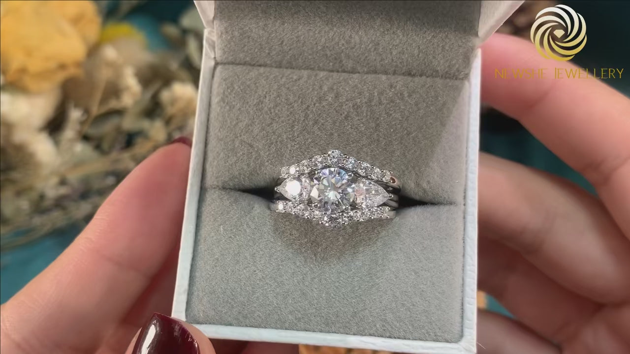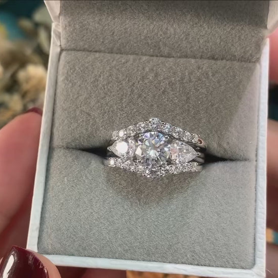 This 3-piece pear shaped engagement ring set features a stunning 1.0 ct round-cut simulated diamond centerpiece, surrounded by premium AAAAA cubic zircon stones that rival the brilliance of natural diamonds. Perfect for daily wear, travel, or as an affordable alternative to traditional diamond jewelry, these rings embody timeless charm.