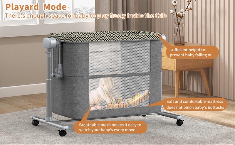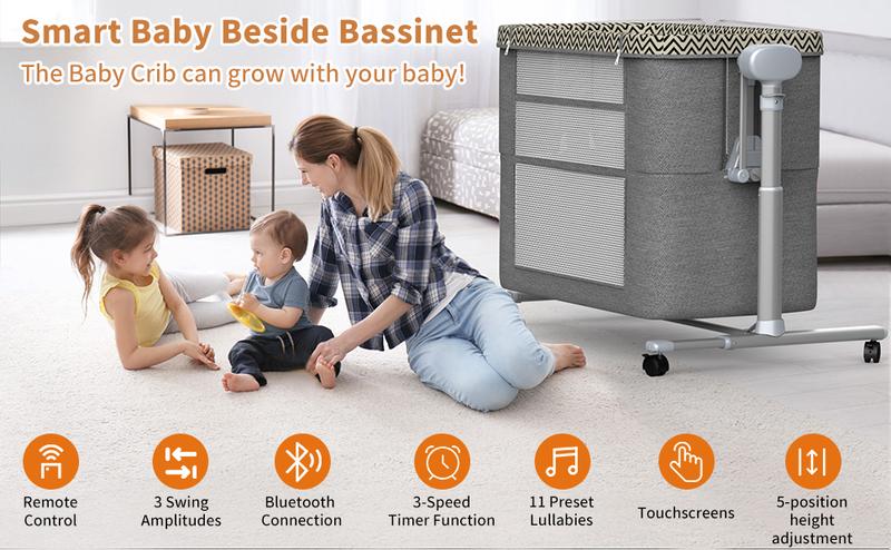 4-and-1 Smart Baby Bassinet: Our baby crib has multiple modes to choose from, crib, bedside sleeper and bed-in-bed functions, as well as rocking baby swing , to meet your baby's diverse need