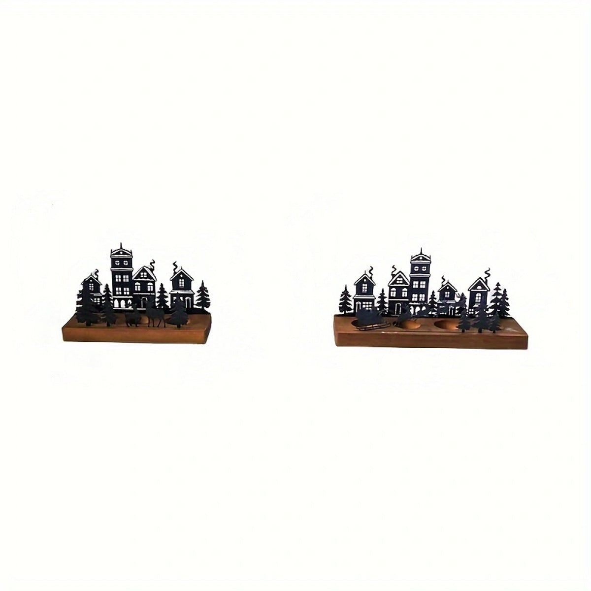 Crafted from durable wrought iron, the candle holder ensures stability and longevity, while the wooden base adds a natural, stylish accent that complements both modern and traditional holiday settings. Its compact yet eye-catching design makes it ideal for home décor, office décor, holiday parties, or as a thoughtful Christmas gift.